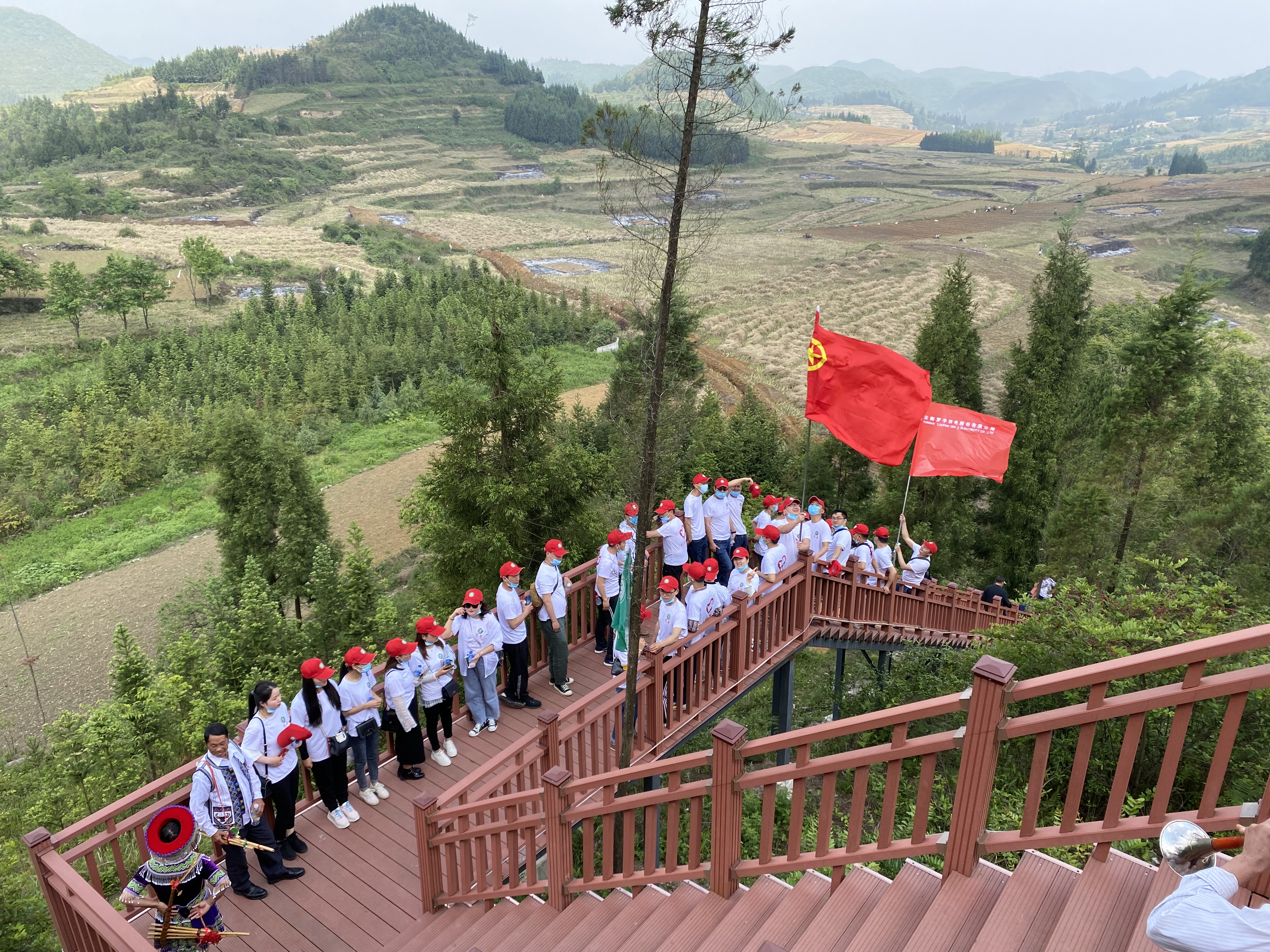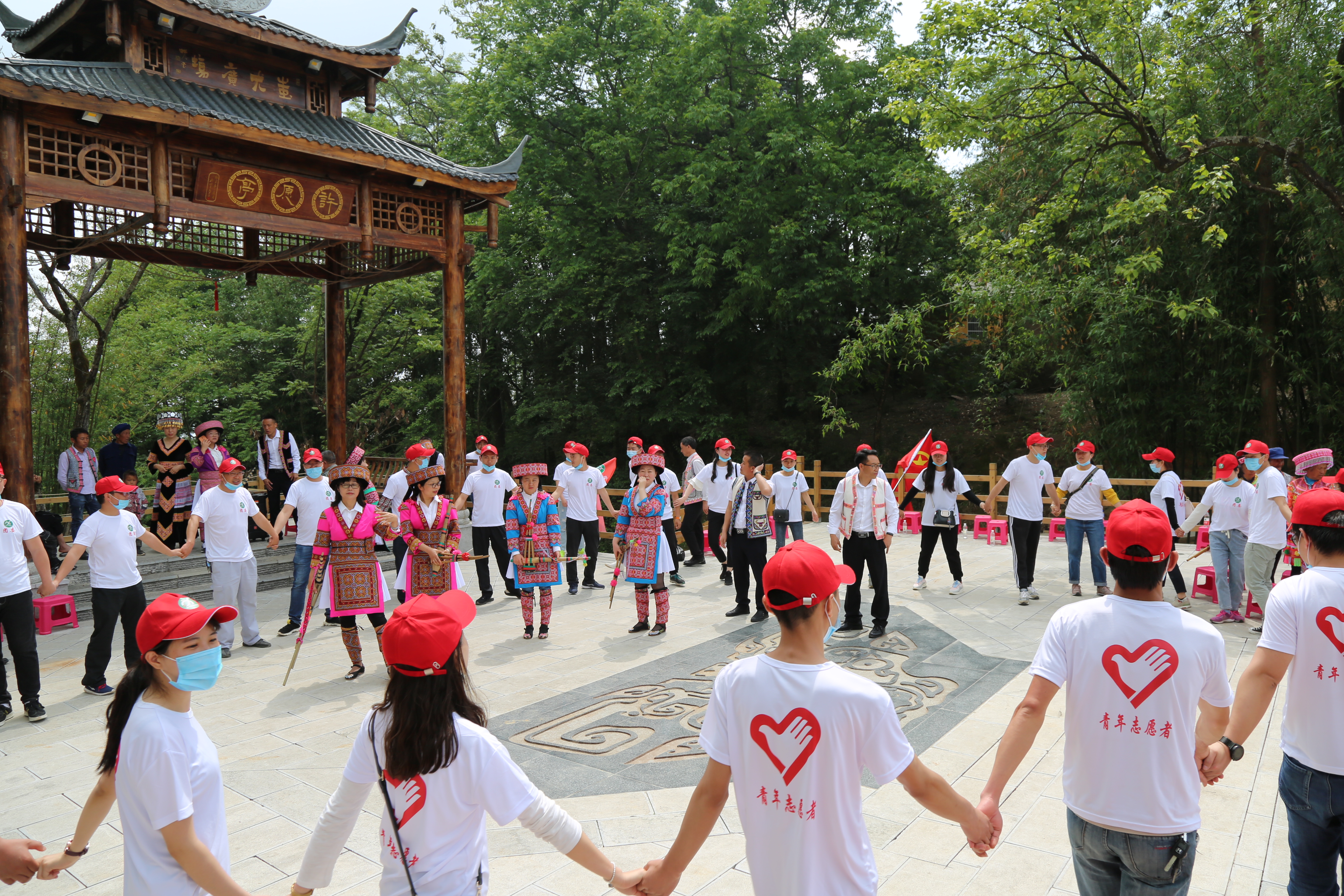 5月1日上午9:00,公司40余名青年代表身著統(tǒng)一的隊(duì)服和隊(duì)帽,乘車(chē)來(lái)到大水井鄉(xiāng)棠梨凹苗族文化村進(jìn)行戶(hù)外團(tuán)建活動(dòng)。五月的棠梨凹,陽(yáng)光明媚、綠樹(shù)成蔭。一路上大家歡聲笑語(yǔ)、互相關(guān)心、互相幫助,欣賞了最美十萬(wàn)峰林,享受了苗族迎賓的最高禮儀,品嘗了最美味的苗家羊湯鍋,體驗(yàn)了現(xiàn)場(chǎng)舂粑粑、石磨、蕩秋千等有趣的娛樂(lè)活動(dòng),也和當(dāng)?shù)孛缱宕迕褚黄疠d歌載舞。處處呈現(xiàn)出團(tuán)結(jié)友愛(ài),歡快和諧的氣氛。
